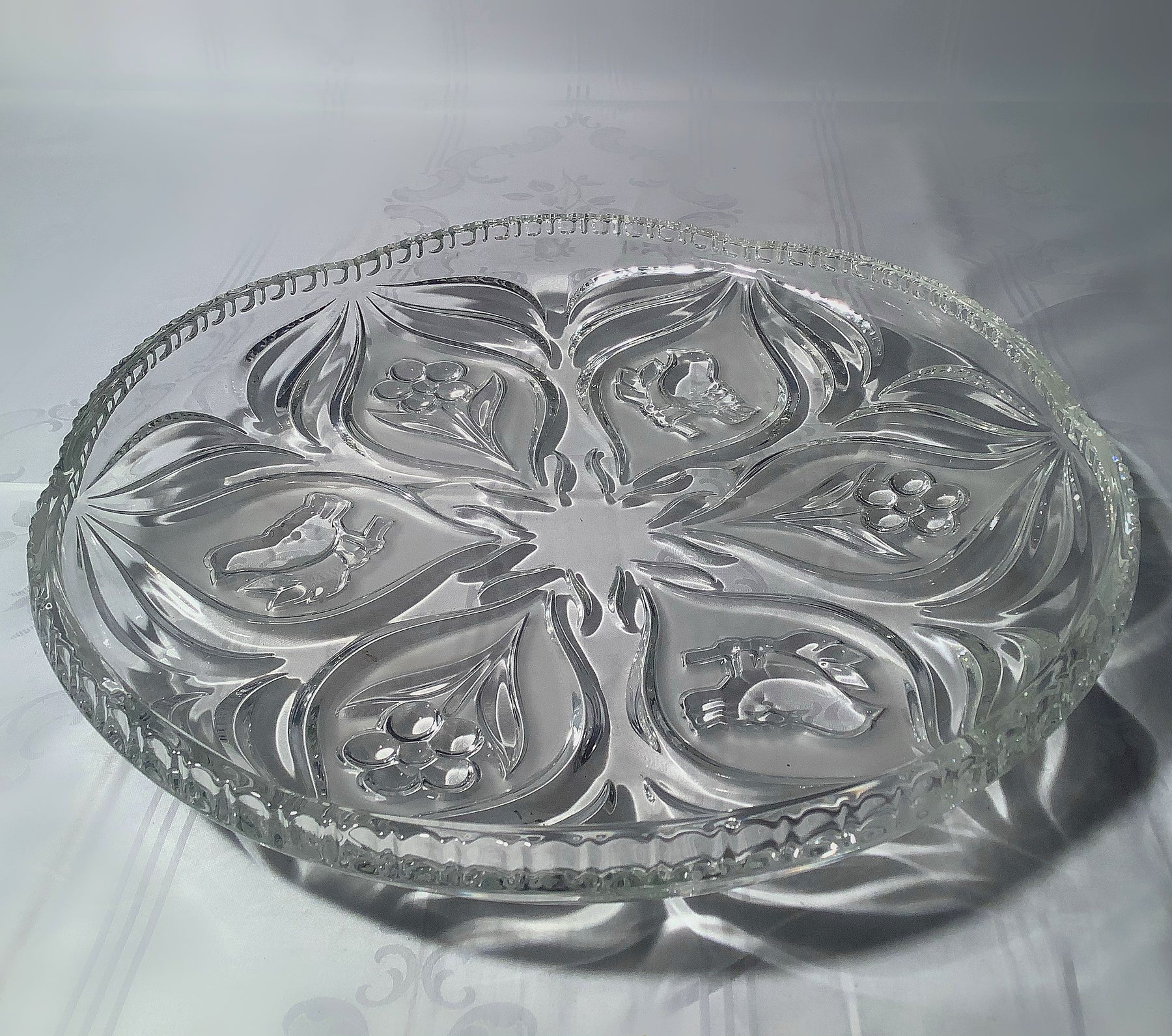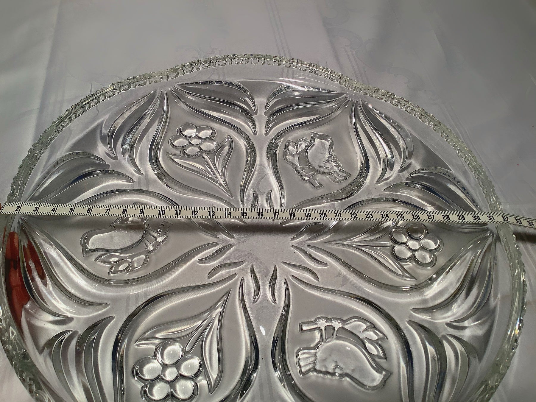 Diese Schale wurde mit großer Sorgfalt und Liebe zum Detail aus hochwertigem Kristall gefertigt. Das zarte Blumenmuster verleiht der Schale eine subtile und anmutige Note, während das klare Kristallmaterial für einen faszinierenden Lichteffekt sorgt. Die Schale eignet sich perfekt als dekoratives Element auf einem Tisch, einer Kommode oder einem Regal. Sie kann für verschiedene Zwecke verwendet werden, sei es als Obstschale, zur Aufbewahrung kleiner Gegenstände oder einfach als Blickfang für Ihre Wohnkultur. Diese Kristall-Schale ist ein zeitloses Stück, das Ihren Raum mit seiner Schönheit und Eleganz bereichert.